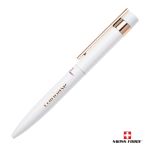 The Swiss Force® Habsburg Ballpoint Metal Pen combines modern sophistication with a smooth, effortless writing experience. Crafted from 60% post-consumer recycled brass and RCS certified, this eco-conscious pen blends sustainability with style. Its sleek rose gold metal accents add a refined touch, making it a perfect choice for professionals and corporate gifting.Product Size: 5.4375″ W x 0.5625″ H x 0.45″ D. 5.4375″ W x 0.5625″ H x 0.45″ D