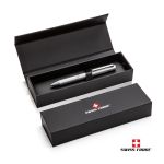 Sleek, metal twist action pen with soft hybrid ink refill. Available in silver, gun metal and black, and includes black Swiss Force packaging.Product Size: 5.4375″ W x 0.4375″ H. 5.4375″ W x 0.4375″ H