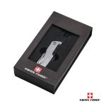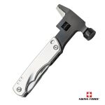 Stainless steel hammer and wrench multi-tool- Functions include: adjustable wrench, hammer, 3 bits, can opener, nail file, knife, flat screwdriver and fish hook remover – Packaged in a stylish Swiss Force EVA insert gift boxProduct Size: 3″ x 7″. 3.0″ W x 7.0″ H