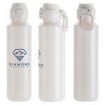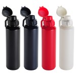 Quench your thirst with our Switchback 27 oz RPET Bottle with Snap-Top Lid & Carabiner, designed for both style and functionality. Featuring a convenient snap-top lid for easy access and a carabiner for attaching to backpacks for portability, it keeps beverages hot or cold for up to 3 hours. Made from BPA-free materials and FDA certified for safety, this bottle is perfect for everyday use. Hand wash only. Complies with FDA, Prop 65. 10.75″ H x 2.75″ Diameter