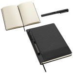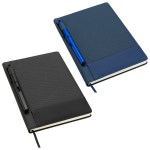 The Symposium Textured Journal is constructed of a dual-textured hardcover with faux leatherette band and features a pen loop on the spine, 80GSM Ivory ruled paper with date field, 96 sheets (192 pages) and color matched ribbon bookmark. Color matched gel pen with black ink and molded grip goes perfect with the textured journal. Complies with Prop 65. 5.875″ L x 0.625″ W x 8.5″ H