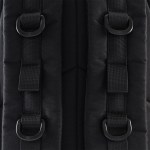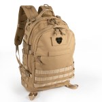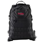 This tactical backpack is made from durable, high density polyester with military grade webbing straps and loops. It has a reinforced top handle, an insert for a 17 laptop and a large nylon zipper and zipper pulls. Also, it has adjustable waist and chest straps and a large front pocket. The back panel and shoulder straps are padded. In addition, there are rifle loops on top, mattress loops on the bottom and extra loops with D-rings for other applications. (For instance, make your own camoflauge with leaves and branches.) There is an access point for a hydration hose built in. 18.5″ W x 14.0″ H x 7.5″ D