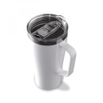 The 532 ml / 18 oz Tall Muggin is a double vacuum insulated mug made with pro-grade stainless steel. Its fitted with a TrueTaste ceramic-lined interior, which does your taste buds a favour by preserving the taste of the stored liquid. This mug features a sleek gloss finish, a push-on spill-resistant slider lid, and an anti-slip silicone base. The Tall Muggin is cup holder friendly and keeps your drink extra hot, but its wide mouth accommodates ice cubes for the beverages that need to be kept cold! Decorate the gloss finish of the Tall Muggin with our default silk screen branding method. 3.5″ L x 7.17″ W x 4.125″ H