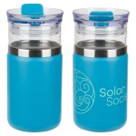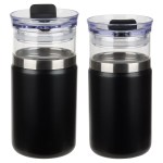 The Tamari 12 oz. Glass Tumbler & Vacuum Insulated Cooler features a 2-in-1 design that allows for use as a 12 oz. glass tumbler or a vacuum-insulated cooler that keeps drinks hot or cold for up to 6 hours. Hand wash only. Complies with FDA, Prop 65. 6.375″ H x 3″ Diameter