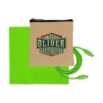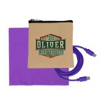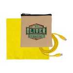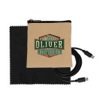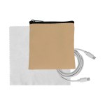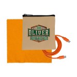 Introducing the sleek Tan Executive Tech Pouch, crafted from recycled PET for a sustainable touch. Also included in this set is a vibrant 4-foot Type C to Type C charging cable, ensuring you stay charged on the go. Complete the ensemble with a colorful 5 x 5 RPET Cleaning Cloth, perfect for keeping your devices sparkling clean. Elevate your tech accessories with this eco-friendly and stylish collection. Complies with CE, Prop 65. 4″ L x 4″ H