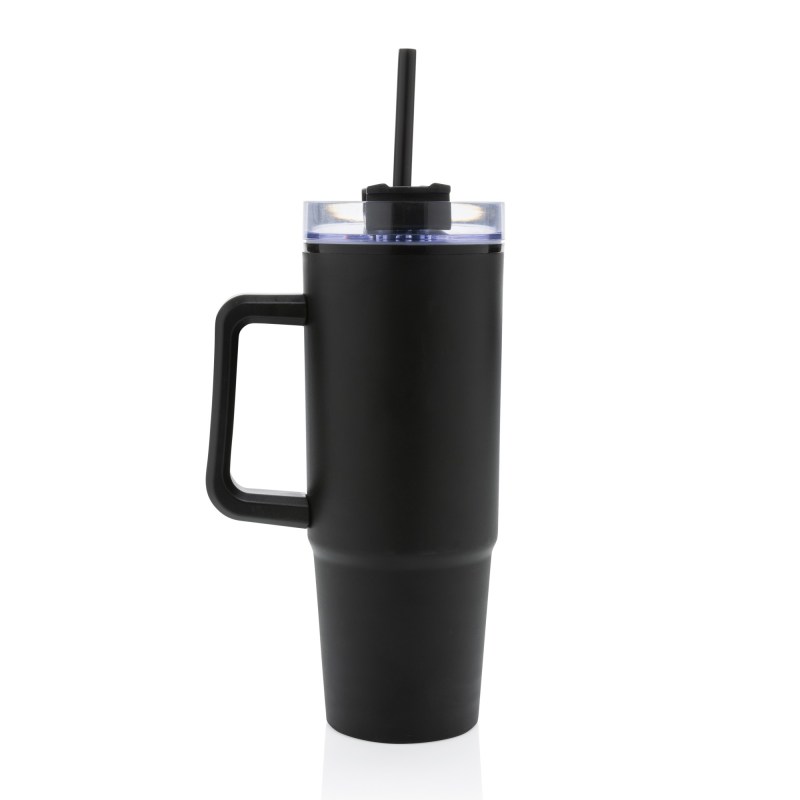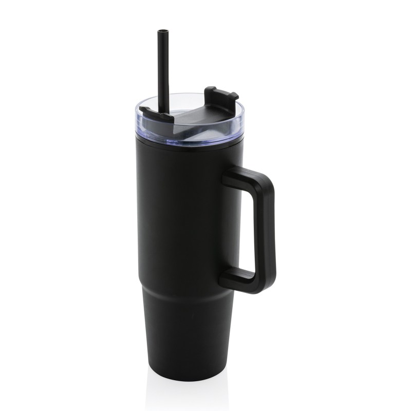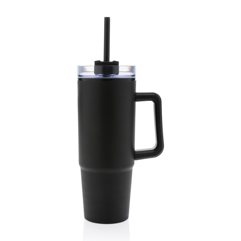 Introducing the Tana double wall plastic tumbler, a 900ml/ 30.4oz tumbler made from 80% recycled material for low impact hydration. The advanced lid features a rotating cap with three positions: a spill-resistant straw opening, a sipping spout, and a fully sealed lid. Complies with CPSIA, Prop 65. 3.5″ W x 9.5″ H x 3.5″ L
