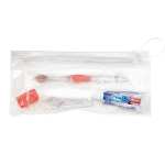 The Teen Wellness 5-Piece Kit is packed in a clear, resealable zipper pouch with a business card pocket on the back. Each kit contains: 1 Teen Accent toothbrush with clear handle & color accents, dental floss sticks, a matching toothbrush travel cap, and 1 tube of Crest®travel toothpaste. An optional 1-color imprint decoration is also available on the pouch. This toothbrush is made in the USA and meets FDA requirements. Only available for shipment within the United States and Canada (including Alaska, Hawaii & Puerto Rico. Less Than Minimum orders are not available. FOB ZIP: WI, 54703. 0.10″ D x 6.50″ W x 3.50″ H