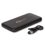 Exquisite presentation with textured body and LED battery indicator, 10,000 mAh, Rated Capacity: 37Wh (watt hours), Type-C input: DC5V/2A, USB Output: DC5V/2.1A, Charging cord included. 5 1/2″ H x 2 5/8″ W