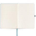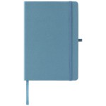 The Terra Recycled Milk Carton Hard Cover Notebook  – A5 offers a unique cover made from 31% recycled milk cartons, giving it a distinctive, textured look with dots due to the recycled material.  It includes 80 sheets (160 pages) of smooth, 70gsm Ivory paper sourced via responsible forestry, perfect for capturing notes or ideas. Bound in a classic book style, the notebook features a matching elastic strap closure, secured with a silver rivet on the back cover, and a coordinating satin ribbon bookmark for easy navigation. 8.27″ H x 5.83″ W x 0.24″ D