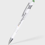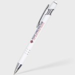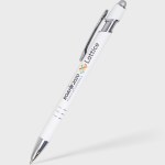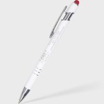 You’ll be on cloud nine with the newest addition to the Textari family. Featuring a rubberized pure white metal barrel with colorful stylus tips this pen bring a fusion of writing comfort, stylus functionality, & fashion together, making you the hero for any professional on the go. The pen uses black ink & has a push retract nib. Complies with Prop 65. 5.59″ L x 5.59″ Diameter