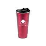 Double-wall stainless steel tumbler- Seamless-seal push on thermoplastic lid- Easy slide drink opening and closure- Glazed colored exterior- Stylish brushed matte finish