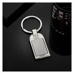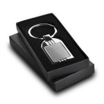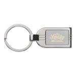 The Bandiera keychain combines function with refined style, featuring a rectangular satin metal body and polished chrome accents. Its sophisticated cut-oval design adds a modern touch, while the wide split ring offers easy attachment to a purse, belt loop, or backpack. Sleek and durable, it’s a polished accessory perfect for everyday use or corporate gifting. 3 1/4″ W x 1 3/8″ H x 1/8″ Thick