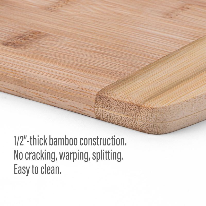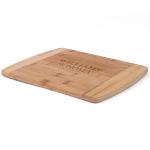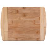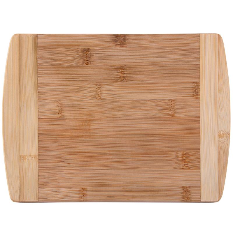 Enjoy long-lasting quality with this large sustainable bamboo cutting board. The board is beautifully presented in a two-tone coloration and is laser engraved for a durable imprint. Also great as a serving tray. 11″w x 8 1/2″h x 1/2. Hand washing with warm water & soap is recommended. Bamboo is an incredibly strong, durable wood that can be sustainably grown to reduce harm to the planet. *The color/texture of the engraving will vary from piece to piece due to the nature of the material. 11″ W x 8 5/8″ H x 1/2″ D