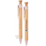 Introducing our newest writing tool that pushes the boundaries of eco-friendliness. Combining bamboo and wheat straw, this innovative instrument minimizes the use of traditional plastics that would typically harm the environment. The barrel and end cap are crafted from durable and sustainable bamboo, while the tip, end cap, and clip are made from wheat straw plastic, available in four vibrant colors. With a 1.0mm pen tip and classic black ink, this ballpoint pen is both stylish and environmentally conscious. Complies with CCPSA, CPSIA, Prop 65. 5 5/8″ H