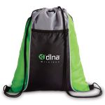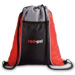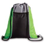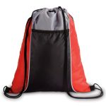 210d polyester durable drawstring backpack. Large front pocket. Color blocking with piping. 13.40625″ W x 16.90625″ H x 0.01″ D