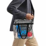 A large clear bag that’s great at literally everything! Take it to a large event for easy security screening, take it to the beach for a day in the sun! Great at a convention, or for a day of sight seeing! Features a handy front zippered pocket, dual strap handles for carrying and adjustable shoulder strap. Spot cleaning and air drying recommended for the best care. Complies with Prop 65. 12″ L x 12″ W x 6″ D