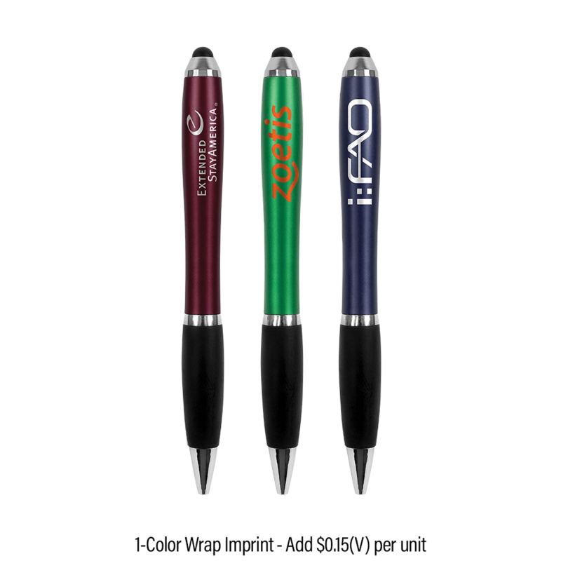 This dual-purpose plastic pen features a colorful barrel, twist-action mechanism, black ink and a soft colored stylus orb that works great with mobile devices, tablets and other touchscreen devices. Royal Blue and Navy Blue was our original Blue. Complies with Prop 65. 2 1/4″ H