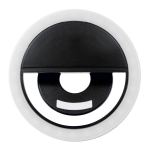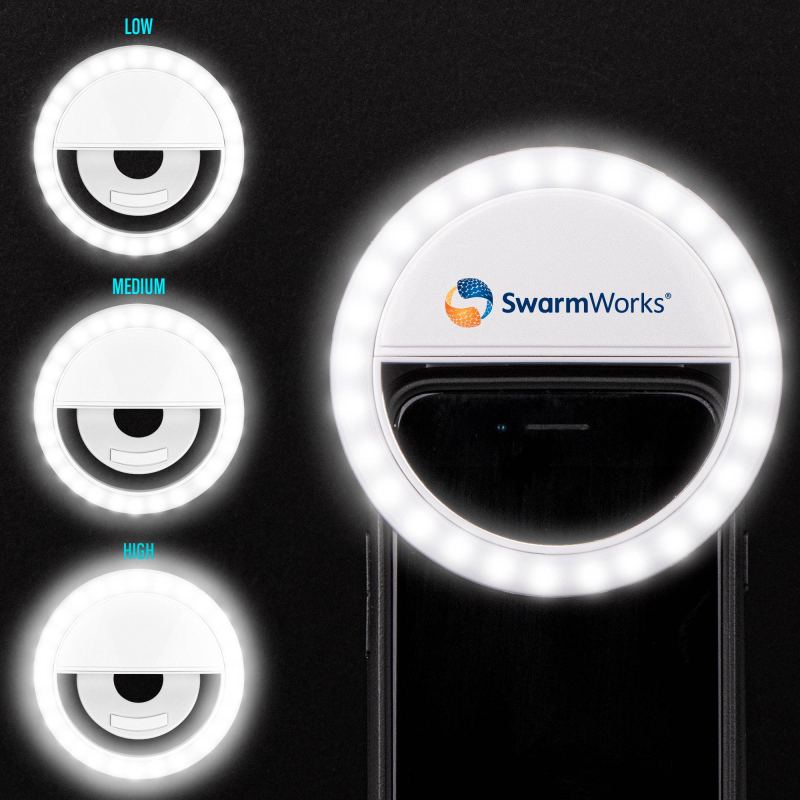 Always take the perfect selfie with this rechargeable, compact selfie light. The LED ring emits a soft glow of pure white light to evenly brighten your face for selfies, live video, youtube content and much more! Conveniently clip the light to your phone for snug secure use. Features: Three power modes, snug, secure fit on many mobile sizes, USB rechargeable, cable included. 3 1/4″ D