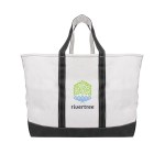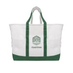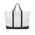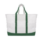 Made Of Heavy Duty 24 Oz. Cotton Canvas. Extra Large Tote With Open Main Compartment. 56 Liter Capacity. 20″ Handles. Complies with Prop 65. 10″ D x 19″ W x 17″ H