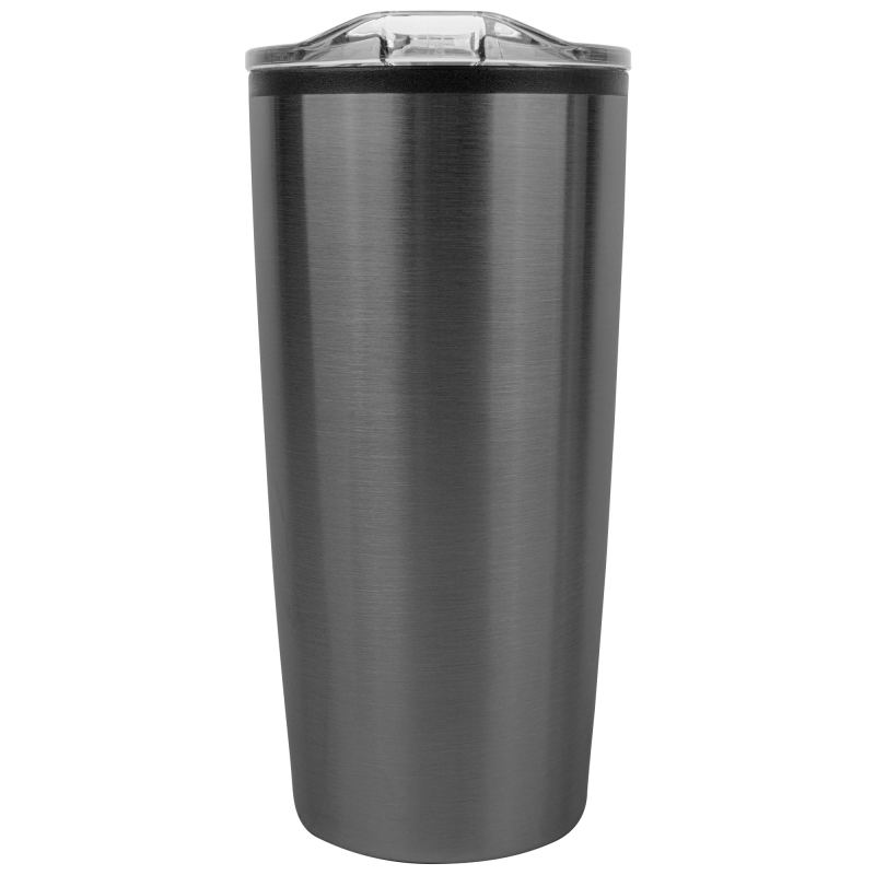 A fantastic mug that features either a durable powder-coated finish, a brushed metallic grey, or brushed silver finish. Exterior is stainless steel with a plastic interior. Features: double wall, convenient clear lid with a spill-proof seal, powder-coated mugs feature a stunning silver-accented rim. We have now eliminated all single-use plastic packaging materials on our reusable bottles.