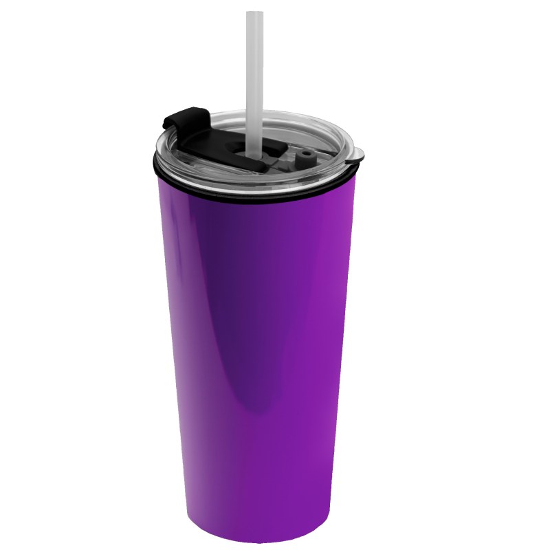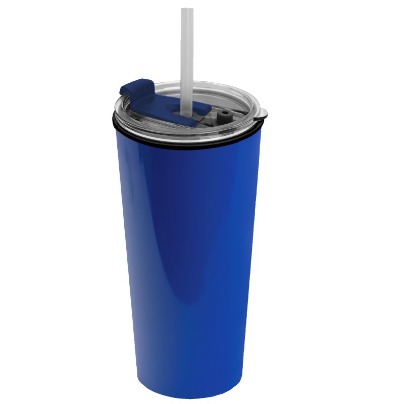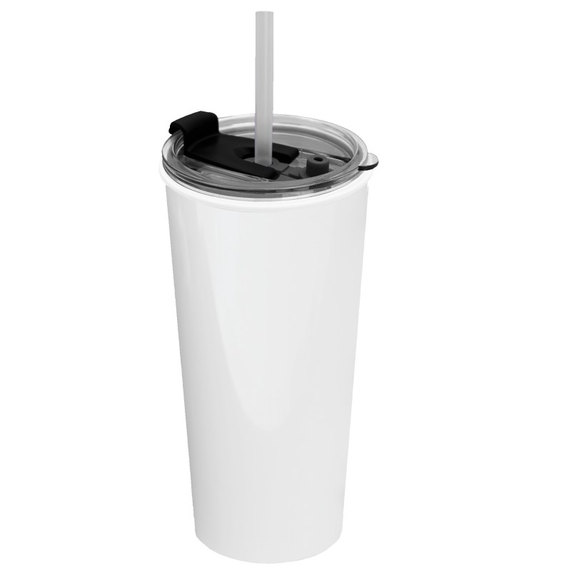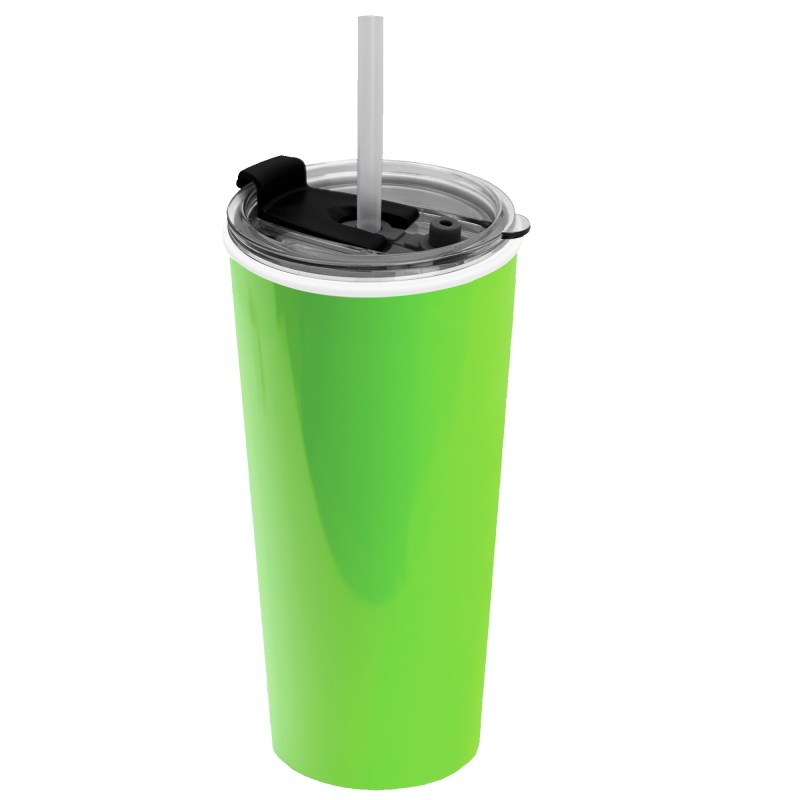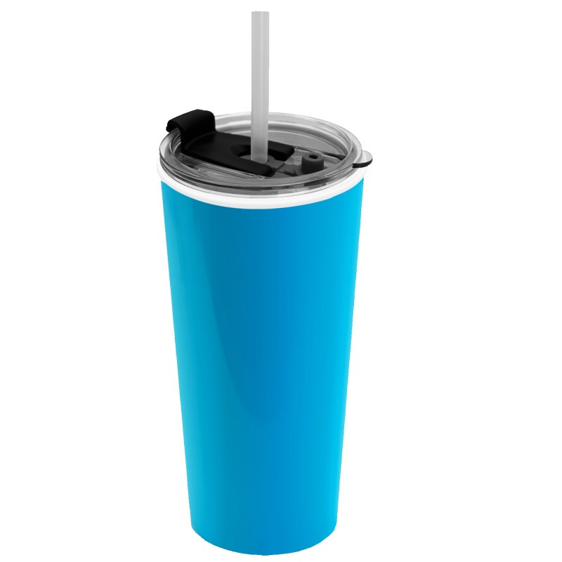 18 oz Double-Wall insulated travel/coffee cup with 2-in-1 Flip and Straw hole lid . Straw included Double-wall insulation maintains a 40-degree difference between the contents and the outside, so it can be used safely without a protective sleeve. Mix & Match Cup and Lid colors.Molded from reusable and recyclable Polypropylene BPA-free. Straws are shipped in the same shipping carton unassembled. Fits most auto cup holders, is top-rack dishwasher safe, & is not recommended for use in a microwave. Complies with ANSI, CPSIA, FDA, Prop 65. 7.5″ H x 3.625″ W x 3.625″ D