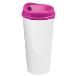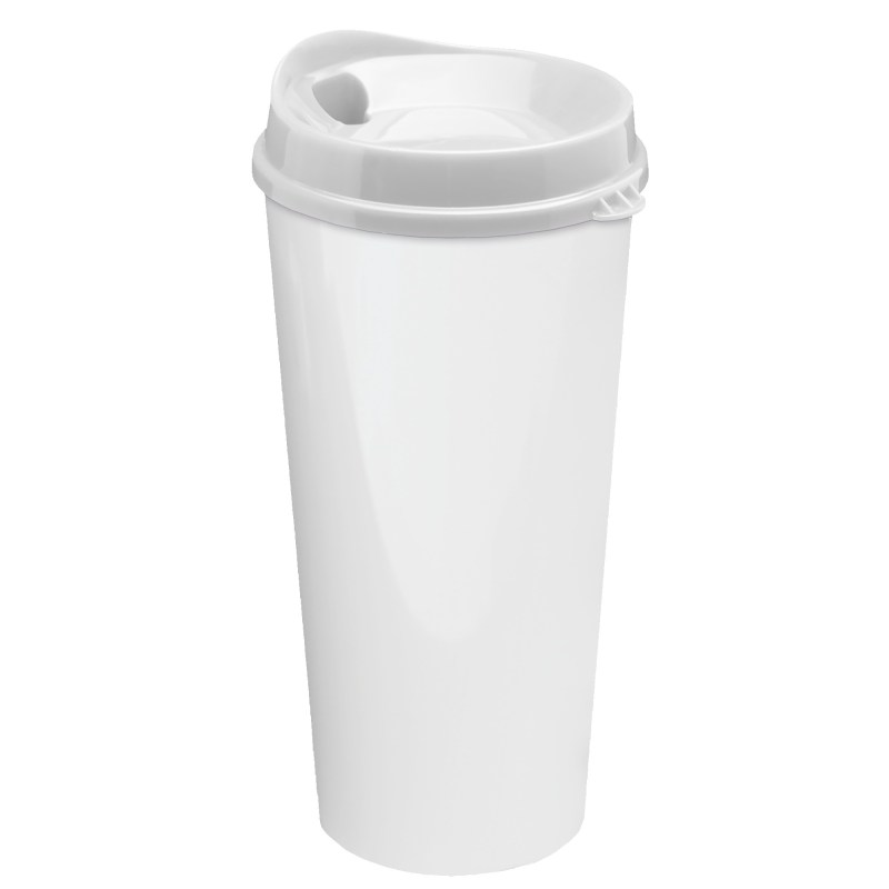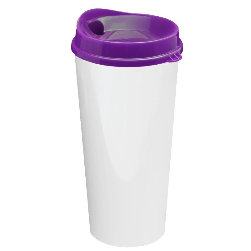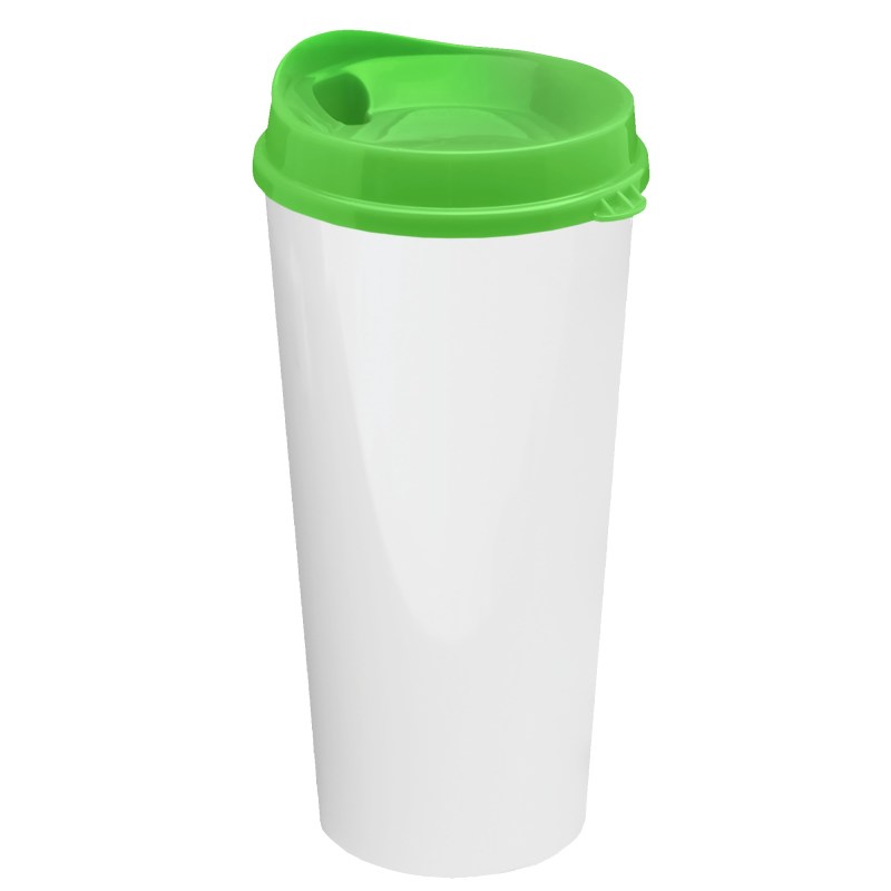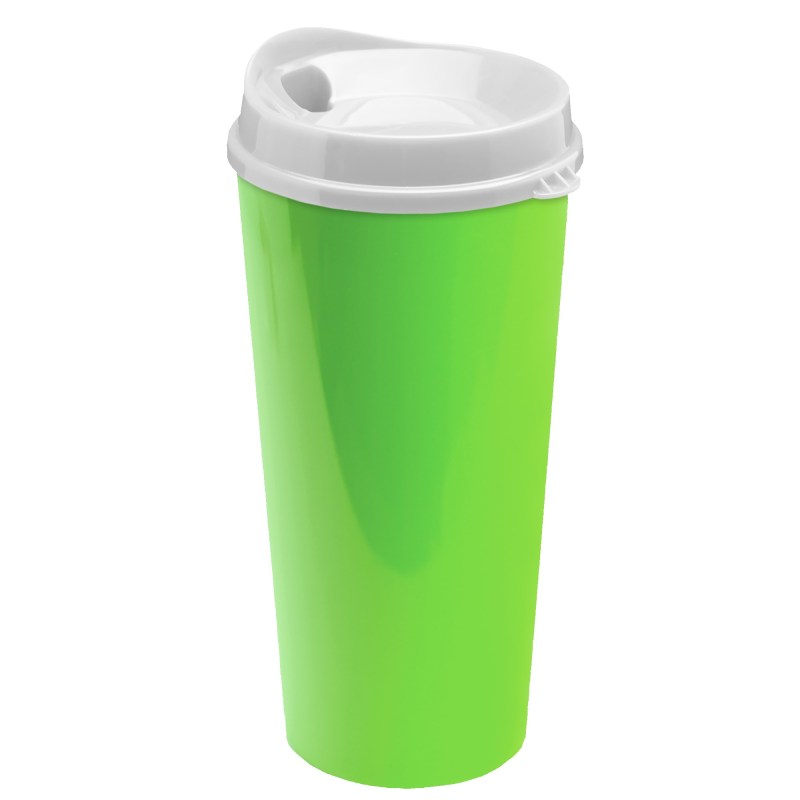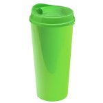 20 Oz. double-wall insulated travel / coffee cup with sip through lid. Your clients will feel instant energy with these bright colors! Double-wall insulation keeps drinks hot or cold. Maintains a 40 degree difference between the contents and the outside, so it can be used safely without a protective sleeve. Molded from BPA-free reusable, refillable, recyclable polypropylene. Ships assembled. Top rack dishwasher-safe. Do not microwave. Complies with ANSI, CPSIA, FDA, Prop 65. 7.5″ H x 3.625″ W x 3.625″ D