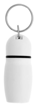 This waterproof designer keychain is made of durable plastic and measures 3 1/2″ x 3/4″. Available in white, it’s perfect for keeping essential medication close at hand wherever you go. Its sleek, portable design doubles as a keychain for added convenience. *Patent pending. Complies with Prop 65. 3 1/2″ W x 3/4″ H