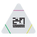 3 Highlighters In One. Highlighter Colors Include Green, Pink And Yellow. Made Of Recycled ABS. Complies with Prop 65. 3.5″ H