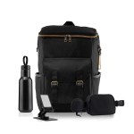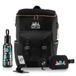 Kit includes: BP395 Chilli Cooler Backpack, BP100 22 oz Loopy Bottle, CS90 Rotating Media Stand and BG900 EcoChic Recycled Belt Bag & Bottle Bag. Complies with ASTM, CPSIA, C-TPAT, FDA. 10.63″ L x 16.7″ W