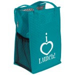 The Therm-O Super Snack™ is insulated to keep contents hot or cold. This lunch-size tote is made with a durable 238 combined GSM premium non-woven exterior, thermal foil interior, reinforced handles, zippered closure, and plastic bottom insert. Handles measure 1″W x 20″ long. 9″ W x 7″ D x 14″ H