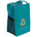 The Therm-O Super Snack™ is insulated to keep contents hot or cold. This lunch-size tote is made with a durable 238 combined GSM premium non-woven exterior, thermal foil interior, reinforced handles, zippered closure, and plastic bottom insert. Handles measure 1″W x 20″ long. 9″ W x 7″ D x 14″ H