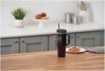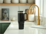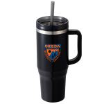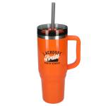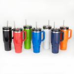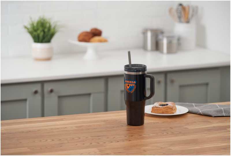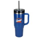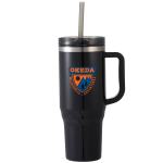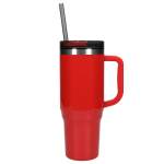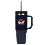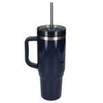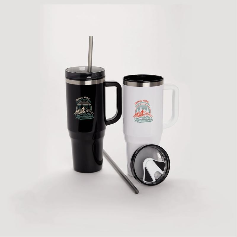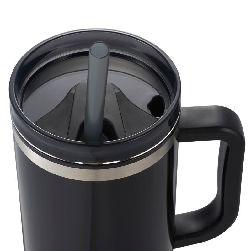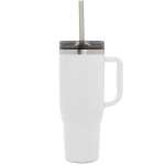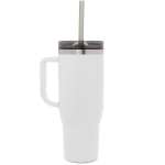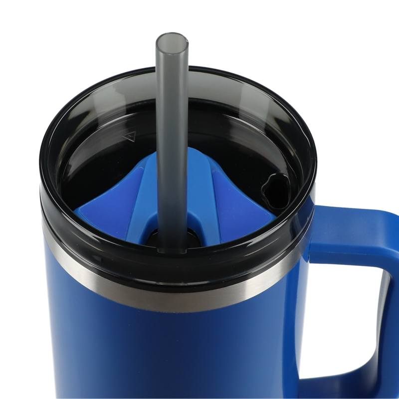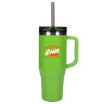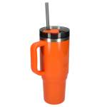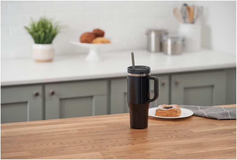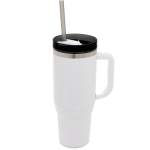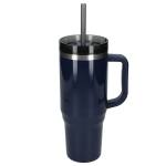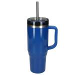 The Thor 40 oz Eco-Friendly Straw Tumbler features durable double-wall construction to keep your beverages hot or cold in any environment. Food-grade recycled straw included for easy reuse daily. The Thor has a 40 oz capacity for fewer refills and features a slim base that fits into most cupholders, comfortable carry handle, and splash-proof press-on lid with two openings and a swivel closure, friendly to both Sippers and Chuggers! Hand-wash only. 0.00″ D x 5.43″ W x 10.31″ H