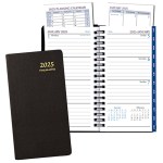 Annual, monthly and weekly planning. Wire bound pages. 12 months: Jan thru Dec. 2 page spread per week for appointments. Current year on 2 2-page spreads. 2-page spread per month for objectives and special projects. U.S. and Canadian holidays. Full Saturday and Sunday. Forward annual planner. Monthly step indexing. 3 1/2″ W x 6 1/2″ H