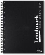 This calendar planner features a sturdy, heavyweight paperboard cover. Inside sheets are made from 60 Lb. white offset paper and include 14 months (December to January), monthly and weekly views pre-printed in blue and gray with reference pages, and a white double pocket inserted in the back. Comes Wire-O bound on the left side. 8 1/4″ W x 10 3/8″ H