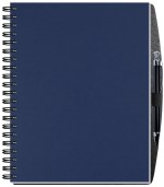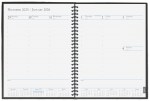 This calendar planner features a sturdy, heavyweight paperboard cover. Inside sheets are made from 60 Lb. white offset paper and include 14 months (December to January), monthly and weekly views pre-printed in blue and gray with reference pages, and a white double pocket inserted in the back. Comes Wire-O bound on the left side with a black heavyweight pen safe back and a pen. 8 1/4″ W x 10 5/8″ H