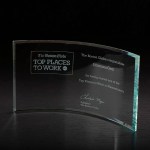 Created from impeccably clear robust glass, this curved collection will showcase your logo in style. Other sizes available: IC7187 Large, IC7185 Small. Made in the USA! 13.0″ W x 7.0″ H x 0.375″ D