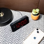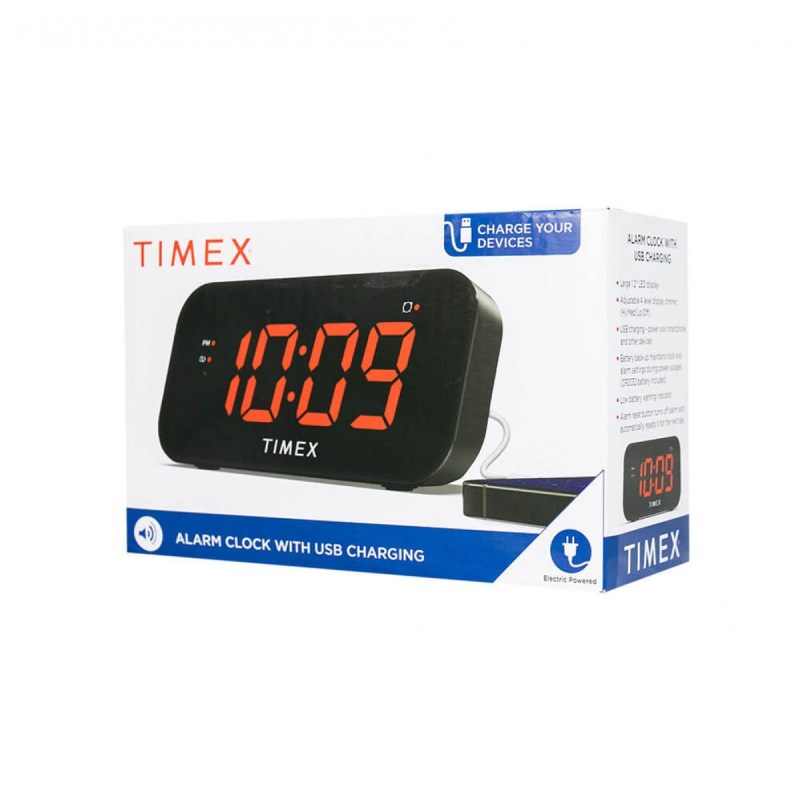 The Timex T1120B Bedside Alarm Clock has a variety of customizable settings that can be programmed in a few simple steps. A large 1.2″ white LED display features an adjustable dimmer function, so you can choose the level of brightness to suit your room. Easily program your time and alarm settings, then wake to the built-in buzzer. Use the convenient ‘Set and Forget’ feature each time you wake – the alarm reset button will silence an alarm, and the clock will automatically set for the next day at. 5″ L x 2.38″ W x 1.88″ H