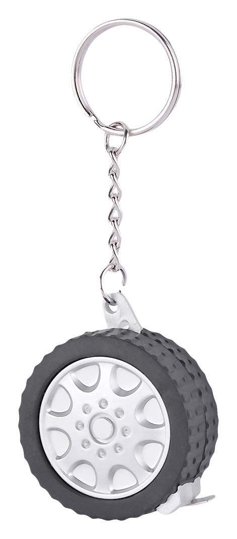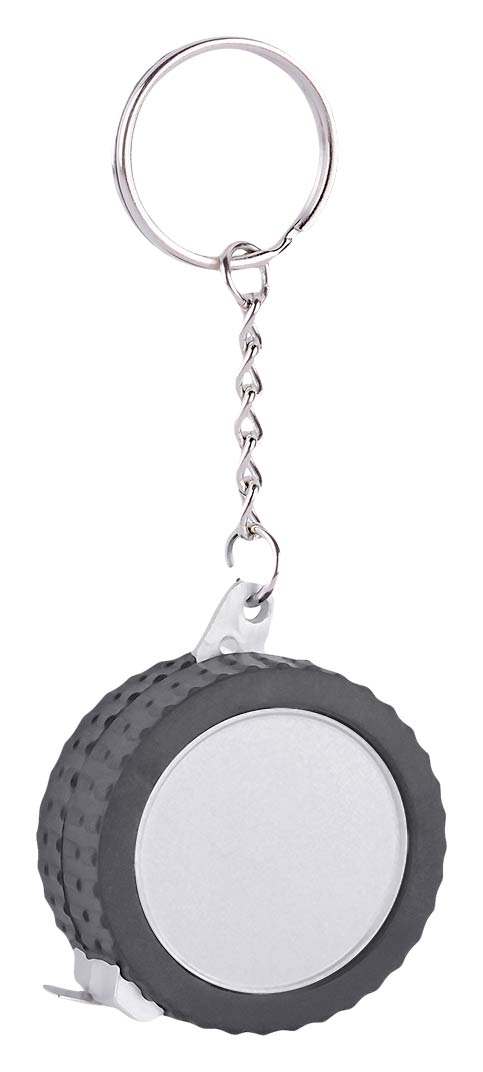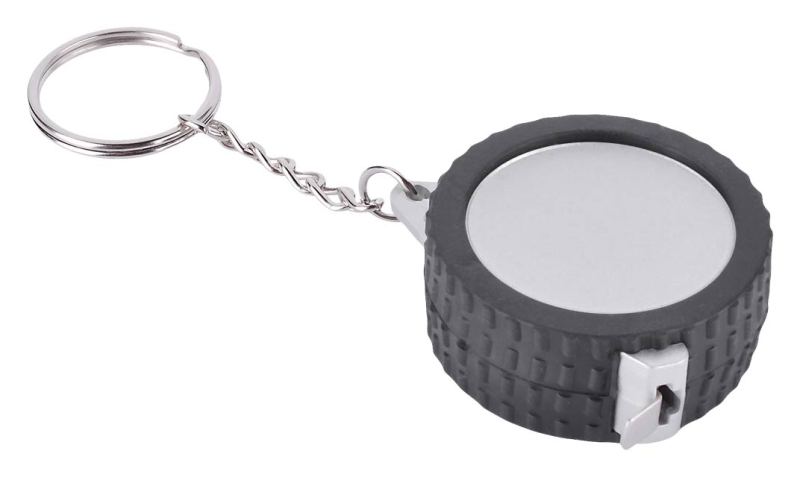 It’s a tape measure and keychain, comes in the shape of a tire with soft rubber tread and metal tape, has a size of 1 5/8″, comes in silver, and measures up to 3 feet. Epoxy Dome is not included in 24 hour service. Epoxy Dome will require 3-day production. 1 5/8″ Diameter