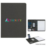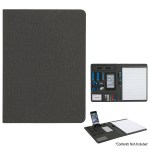 Includes 30 Page 8 ½” x 11″ Lined Writing Pad. Slots And Pockets For Multi-Media Organization. Phone Or Tablet Stand Holds A Variety Of Phone Sizes For Easy Viewing. Card Holders, Elastic Pen Loop And ID Holder. Complies with Prop 65. 9.5″ W x 13″ H