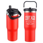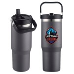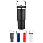 The Tollara 30 oz Vacuum Insulated Tumbler with Flip Top Spout is made of 18/8 stainless steel with a powder-coated matte finish and is copper-lined with double-wall insulation that keeps beverages cold for up to 24 hours. Comes with a plastic lid with a flip-top spout and carrier handle. Recommended hand wash only and should not be put in the microwave or freezer. Must be ordered in exact case quantities and may ship from CA location. FDA certified. Complies with CPSIA, FDA, Prop 65. 10″ H x 3.5″ Diameter