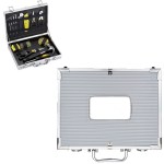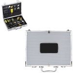 Includes soft touch needle-nose pliers, slip lock pliers, utility knife, adjustable crescent wrench, hammer, tape measure, scissors, 4 Allen keys, 3 micro screwdrivers, magnetic driver handle, driver bit set, and assortment of plugs, screws and nails. 12.375″ D x 9.5″ W x 2.625″ H