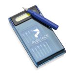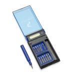 Toolsmith MultiTool Set with advanced Super Bright COB LED light. Complete set features…-Screwdriver Handle-12 bits Including…-Phillips 00, 0, 1, 2-Slotted 1.5mm, 2mm, 3mm, 3.5mm-Torx T4, T6, T8, T10-Ultra Bright COB LED light with 2 settings, Always on or flashing SOS Strobe light. Product Size: 2.625″ x 5″ x 0.75″. 2.625″ W x 5.0″ H x 0.75″ D