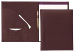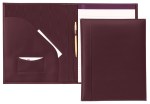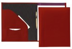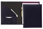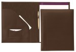 Superior design gives this turned edge, silk moire lined folio an unbeatable look. Note the large leather pocket and business card pocket. 9 3/4″ W x 12 1/4″ L