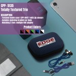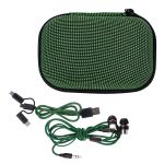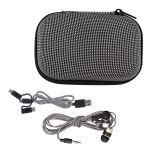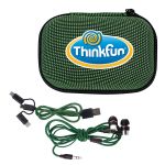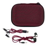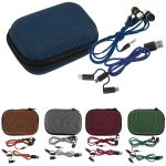 Elevate your tech game with our Textured Techie Case featuring a convenient zip closure. This stylish case comes complete with matching braided ear buds for a seamless look. Also included is a matching 2-foot charging cable and a versatile multiple USB adaptor, making it compatible with IOS devices, Micro USB, and Type C USB. Rest easy knowing that our patented design ensures the highest quality and functionality for all your tech needs. Complies with CE, Prop 65. 4.25″ L x 1.75″ W x 3.25″ H