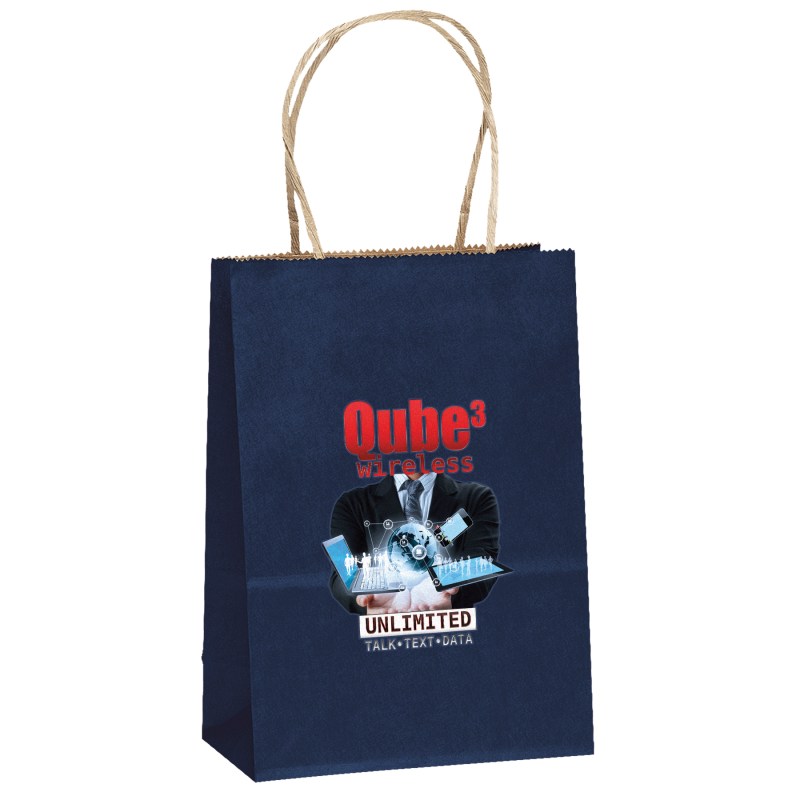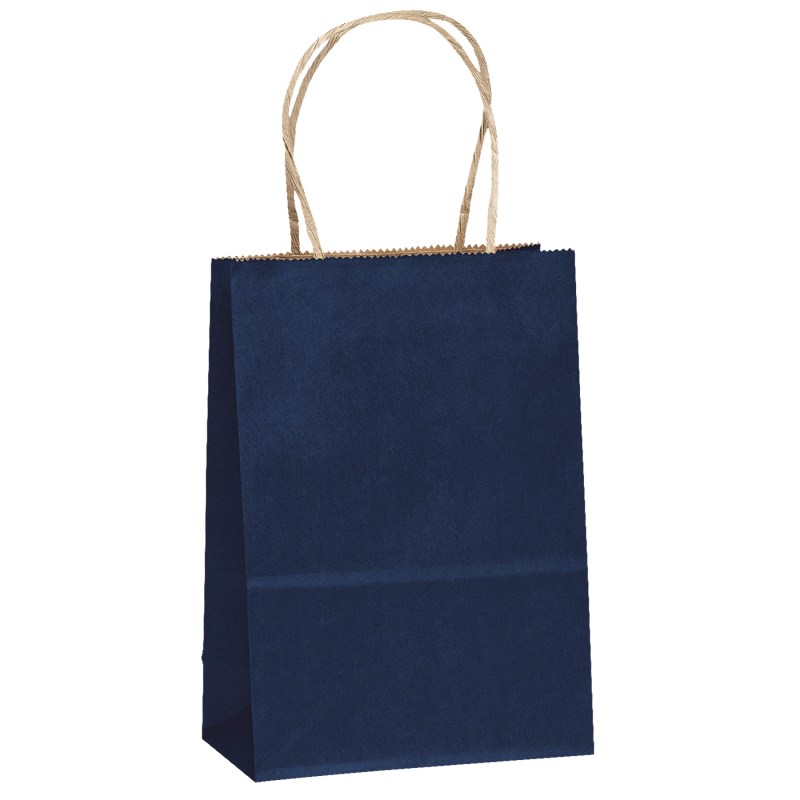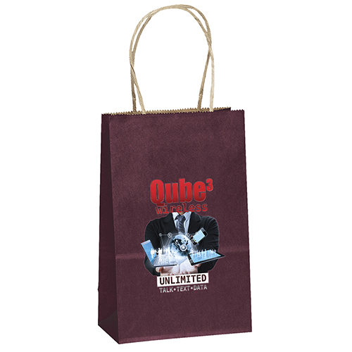 Our affordable matte paper shoppers include a serrated cut top and twisted paper handles. Complies with CPSIA, C-TPAT, FDA, Prop 65. 5.5″ W x 3.5″ D x 8″ H