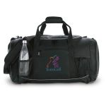 Numerous large zippered exterior and interior pockets Ventilated shoe storage section Woven handles with padded cover Detachable shoulder strap Made of 600d polyester. 20.0″ W x 13.0″ H x 12.0″ D