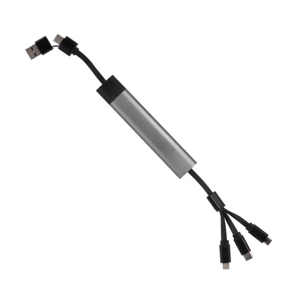 Travel Charging Cable – the ultimate solution for on-the-go charging. Featuring versatile Type C and USB inputs, this compact 10 cable offers Micro, Type C, and Lightning outputs! Crafted with premium aluminum, it’s both durable and stylish. Its compact size makes it perfect for traveling, easily fitting into any bag or pocket. Stay powered up wherever you go with our reliable, multi-functional travel charging cable. 7.09″ L x 0.9″ W x 0.6″ H