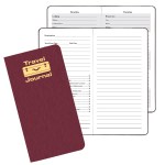 Travel Journal, 3-1/2″x6-1/2″ saddle stitched. Travel dates, travel checklist, favorites, trip event, time zone map, International Phone Codes, Common Phrases, Spanish, French, Italian, Currencies, Purchases, New Friends. 3 1/2″ W x 6 1/2″ H