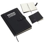 Features a double front cover with large pocket and five card pockets, one with clear window, 80 sheet ruled pad with two ribbon page markers, Pen loop, Strap closure, Decorative stitched edge. Complies with Prop 65. 5.5″ L x 8.25″ W x 1″ H