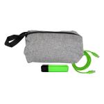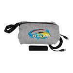 Eco-friendly Travel Pouch featuring a sleek Black hand strap. The powerful UL Viper Power Bank boasts a charging capacity of 1800 mAh and is UL Certified for safety. Complete your charging set with a vibrant 4-foot Type C to Type C charging cable. Charge your devices in style and convenience with this high-quality, sustainable travel accessory collection. Complies with CE, cUL, FCC, Prop 65, UL, UN38.3. 7.75″ L x 5″ H x 2″ W